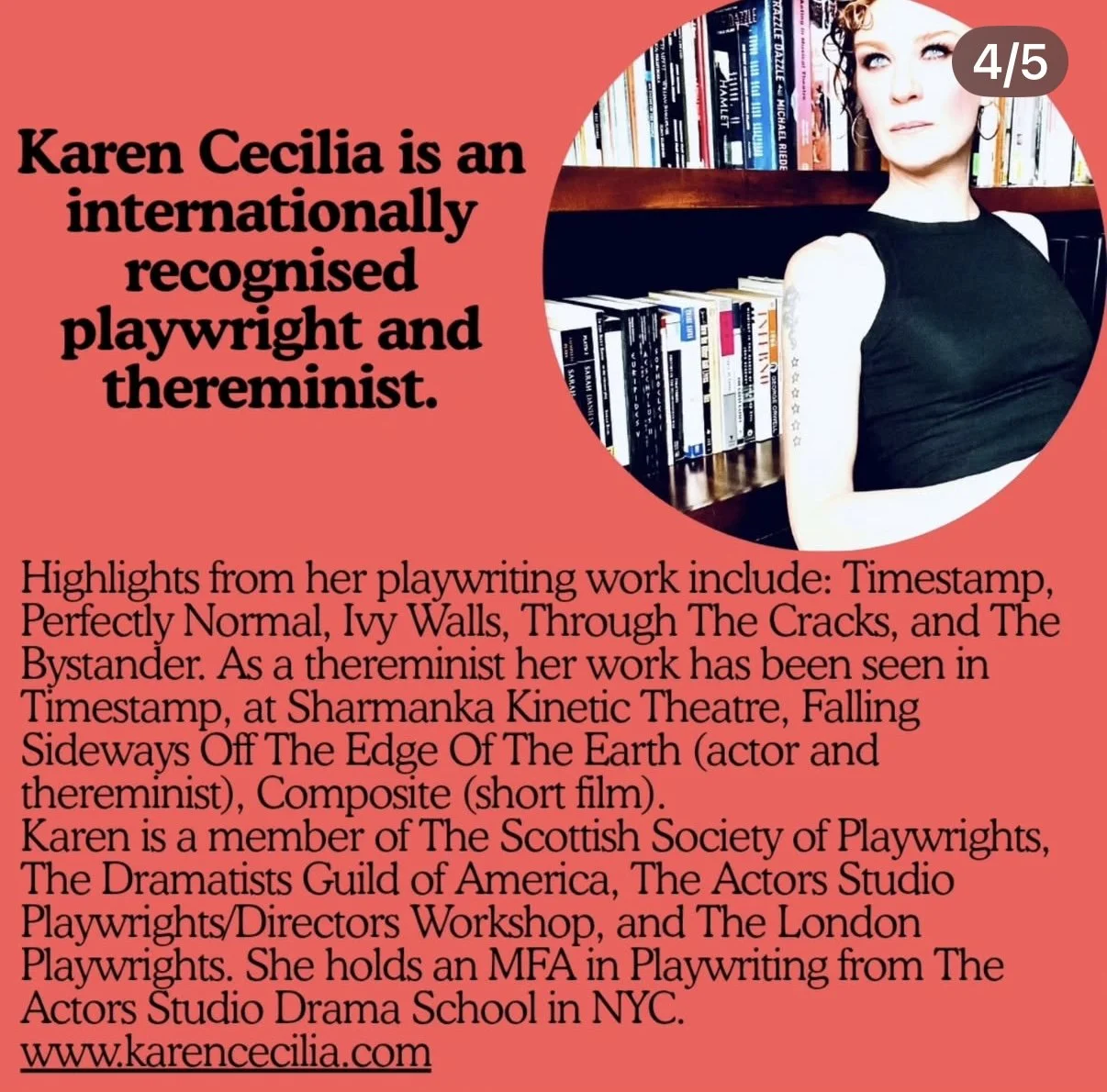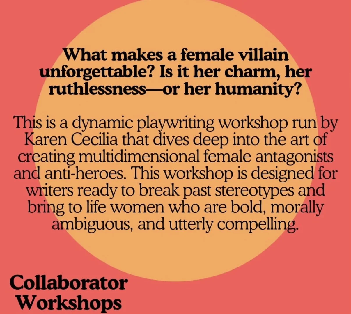 25th September 2025 at 7pm GMT, Karen Cecilia lead an in-depth writing workshop on writing Female Villains and Anti-heroes. In donation to The London Playwrights